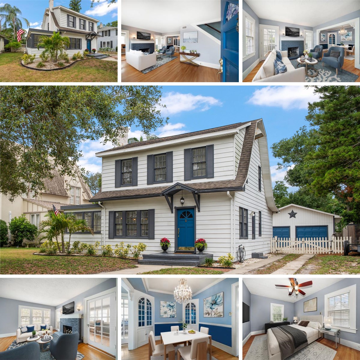 Brimming with character and potential, this timeless home in the Clearwater Country Club community offers a rare blend of history, charm, and location. Steeped in a century of stories, it awaits a new owner ready to bring it back to its full glory. Inside, you’ll find original wood floors, detailed millwork, and built-ins that showcase the craftsmanship of another era. The spacious living room, anchored by a wood-burning fireplace, sets a warm and inviting tone, while the adjoining dining room and kitchen provide an excellent layout for entertaining or formal dining. The kitchen has been fully renovated , featuring stainless-steel appliances and a center island — a perfect foundation for your dream space. French doors open to a generous backyard retreat with a patio and firepit area, offering room to reimagine your outdoor oasis. The detached oversized two-car garage and workshop provide ample space plus potential for a workshop or guest suite. The primary suite is conveniently located on the main floor, and upstairs you’ll find three additional bedrooms, an updated bath, and a separate office or fifth bedroom. Set in the desirable Presidential neighborhood — one of Clearwater’s most historic enclaves — this property is ideal for those who appreciate old-world character and aren’t afraid to make improvements. Bring your vision, creativity, and a bit of TLC to transform this diamond in the rough into something truly special.